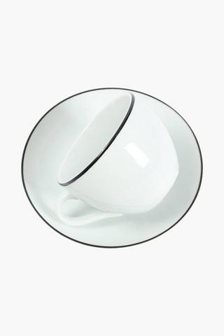 Indulge in the elegance and sophistication of our Cedar Rim Porcelain Cup and Saucer Set. Perfect for those who appreciate the finer things in life. Dimensions: Cup -W8XH6CM, Saucer - W14XH2CM.