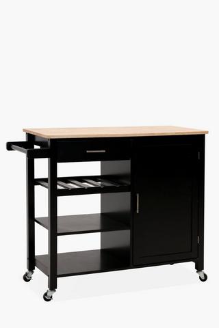 This wooden kitchen island, with multi-storage options and wheels for easy mobility adds that finishing touch of classic convenience to your home.